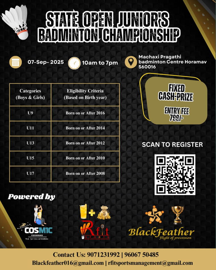📍Venue: Machaxi Pragathi Badminton Centre, Jayanti Nagar, Horamavu